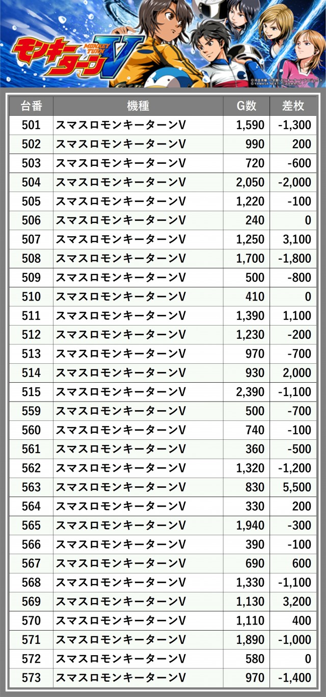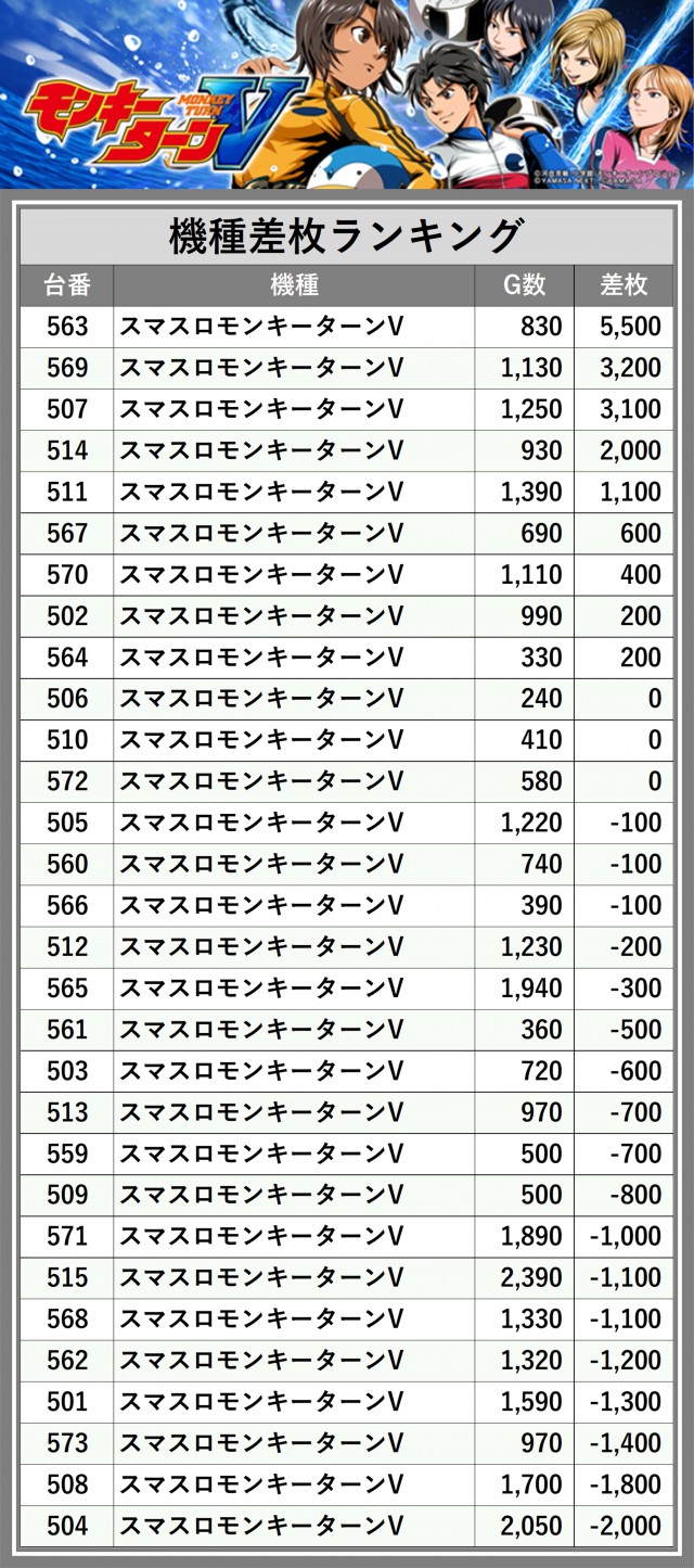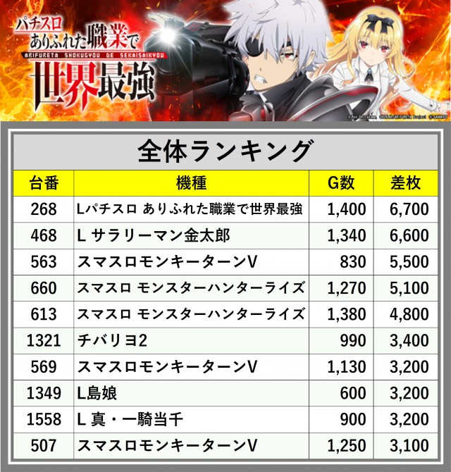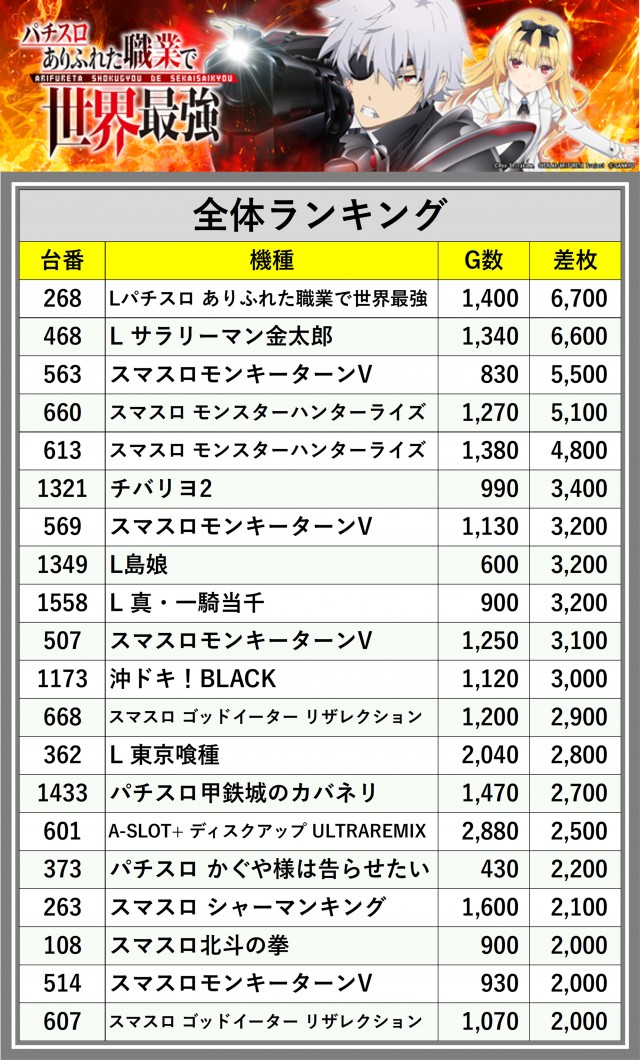 ※差枚数順に掲載しています