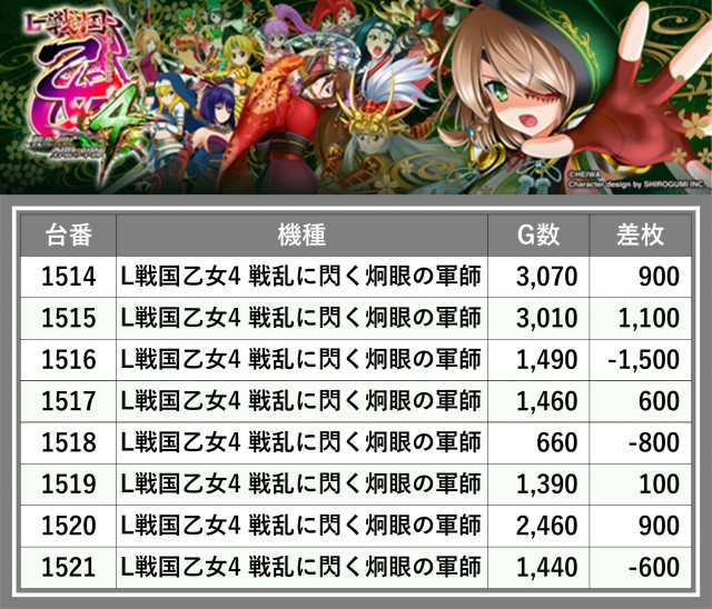 厳選された取材対象機種をはじめ、その他スロット全体から好記録が飛び出した!プレイヤーが楽しんだ1日を下記データにて振り返ってみて欲しい。