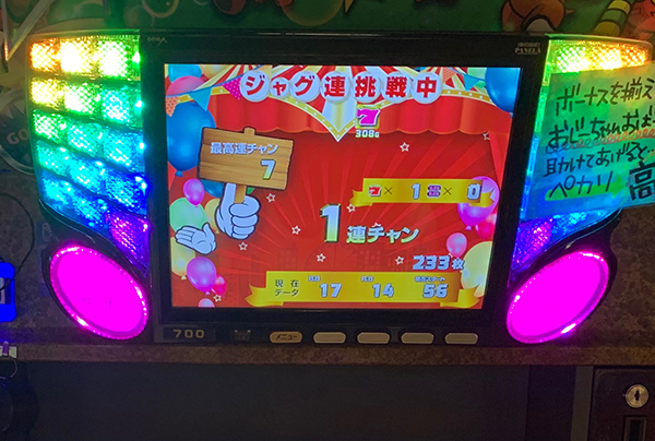 『ファンキージャグラー』は4台あり、16時の時点で2台が20回以上のボーナスを獲得。
