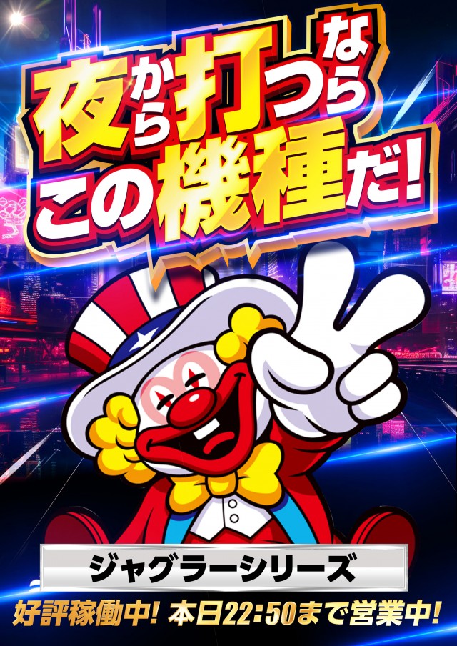 夜からモット楽しく⚡スマスロ北斗⚡ジャグラー⚡好評稼働中⚡
