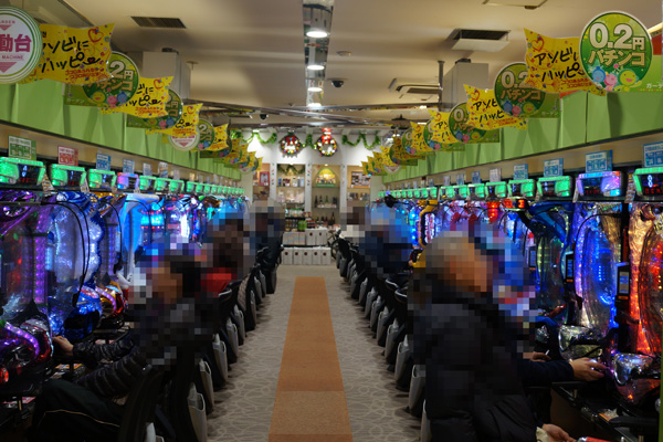 18時ごろの店内の状況は、1.04円と0.2円のパチンコ低貸しコーナーが特に大盛況。