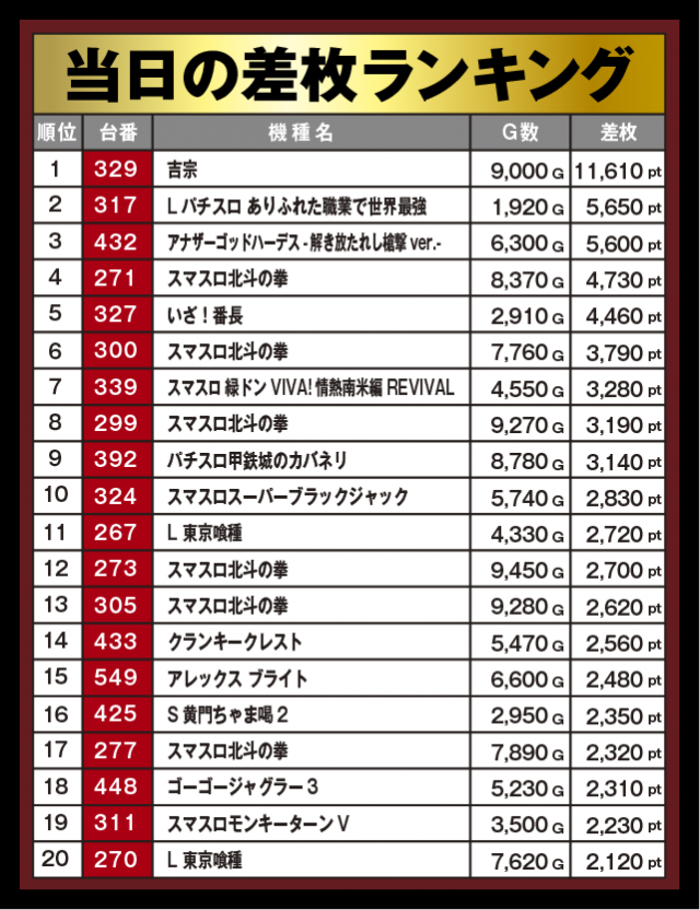 差枚ランキング