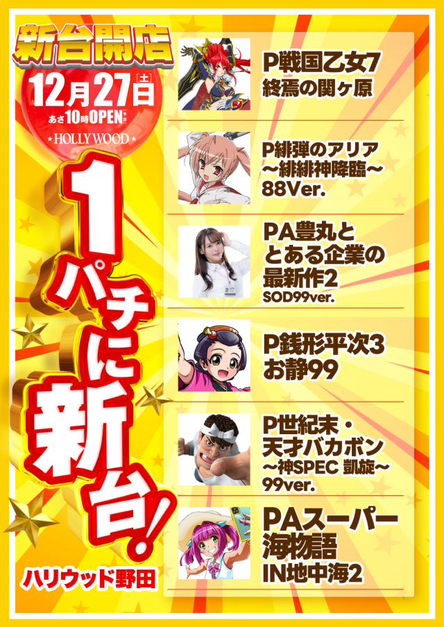 12月9日 新台開店【化物語・暴凶星など6機種】登場 !!!