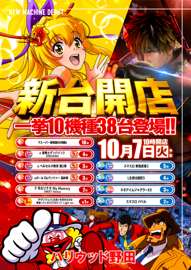 10月7日 火曜日 新台開店 !!! 【沖海6登場】