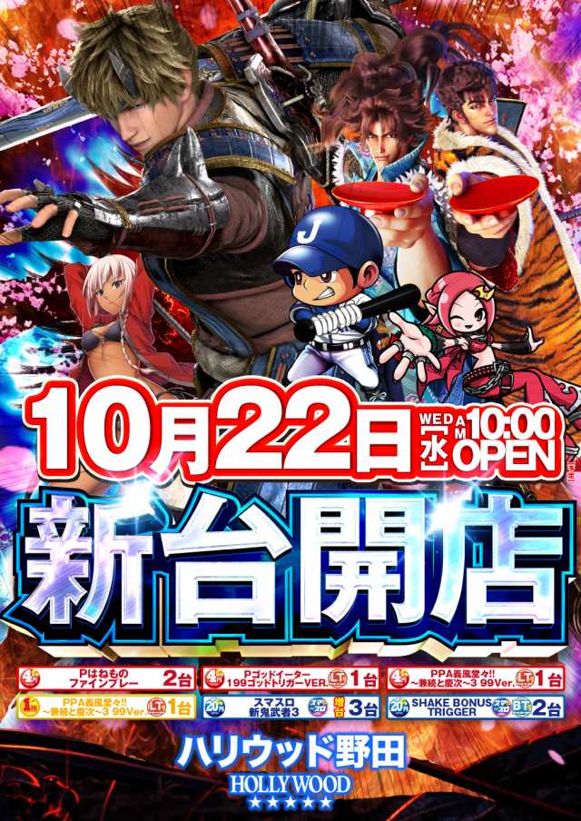 10月22日 水曜日 新台開店 !!! 【新鬼武者 増台】