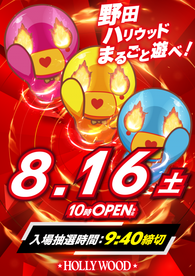 8月16日【第3土曜日】 入場抽選9時40分締切 !!!
