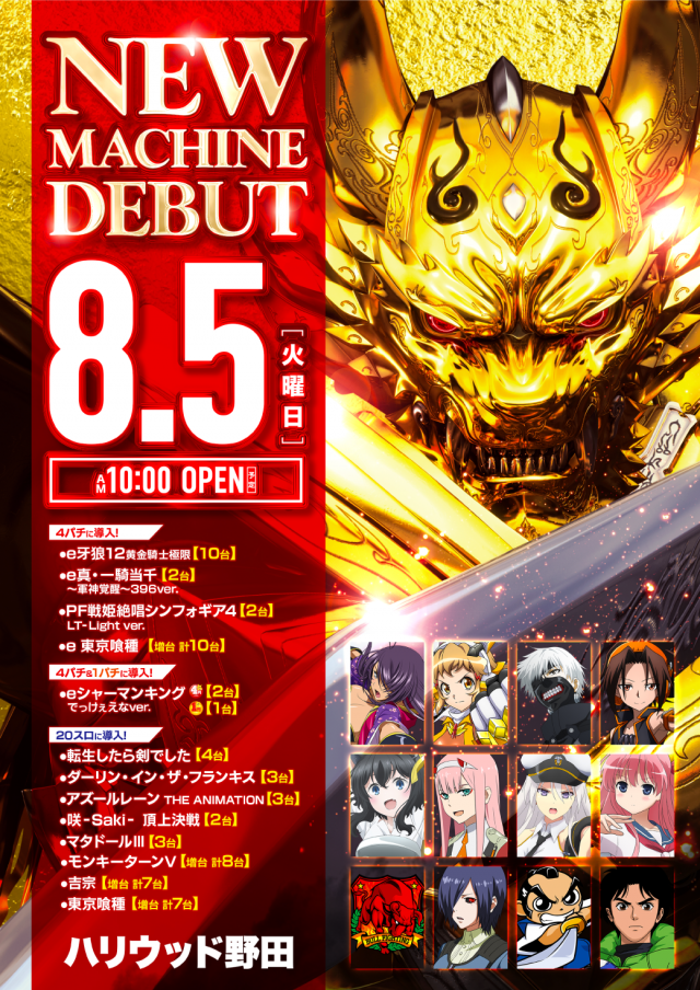 8月5日 大型新台開店 !!!【入場抽選 9:40 締切】