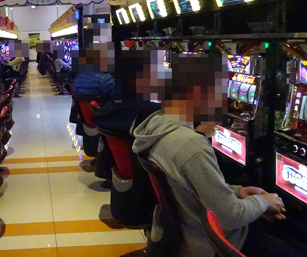 随所が明るいムードに包まれている店内で、とくに活気に満ちていたのはパチスロコーナーだ。