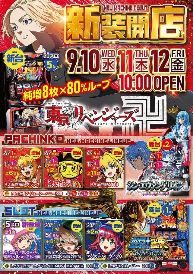 2025/09/09話題の最新機種導入‼️ 明日は新装開店だ‼️明日 9月10日 ★★新装開店★★   皆様のご来店をスタッフ一同 心よりお待ちしております。