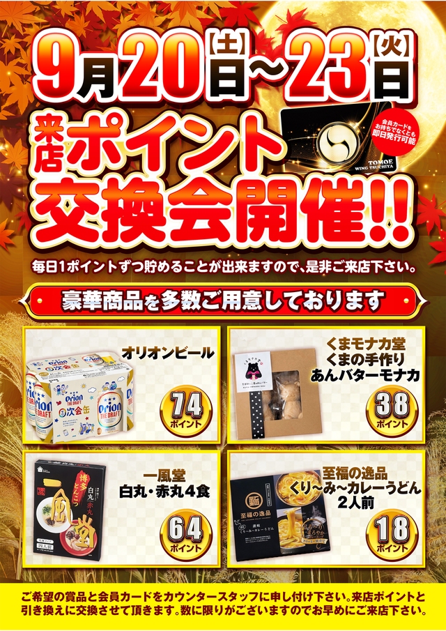 2025/09/22明日9月23日ポイント交換会開催‼️