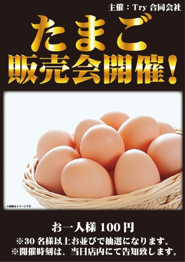 2025/07/26明日7月27日 たまご販売会開催‼️明日 7月27日 たまご販売会開催!! 10時OPEN!!  皆様のご来店をスタッフ一同 心よりお待ちしております。