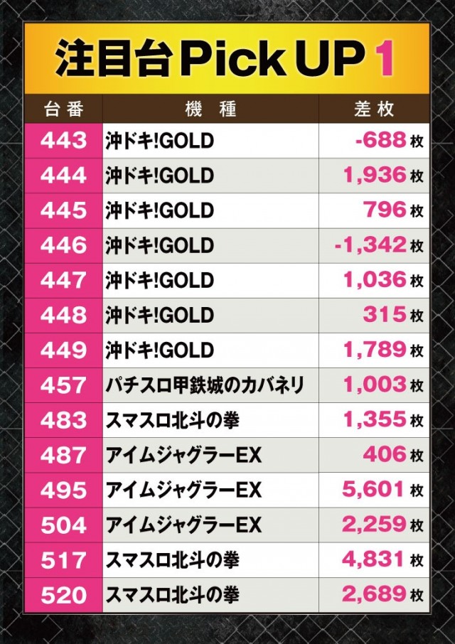 今回は全台系をはじめ、ジャグラーシリーズ・スマスロなど、好調台が多数目に付く結果となった。これは次回のブラックエンジェルス降臨も見逃せないぜ!