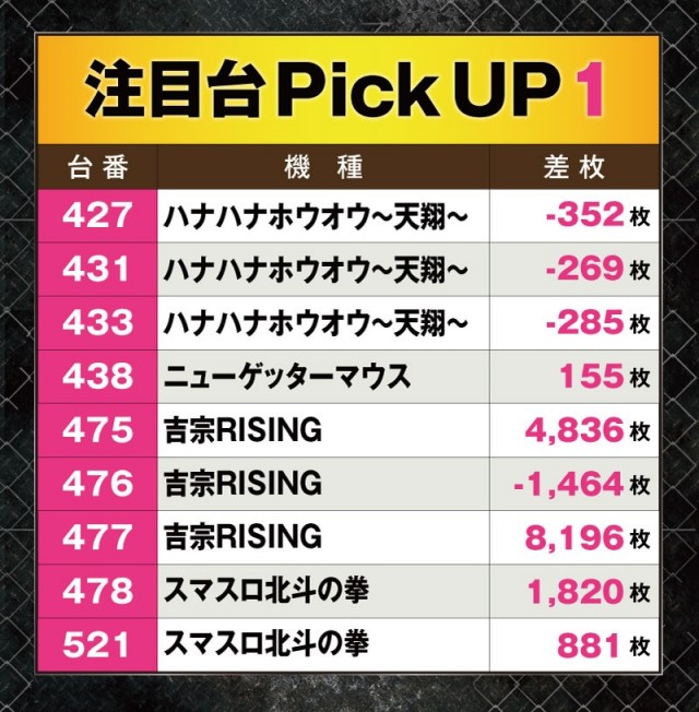 今回の好調台は9台と多くは無いものの、稼働が付いている好調台はしっかり結果を残している印象を受けた。
