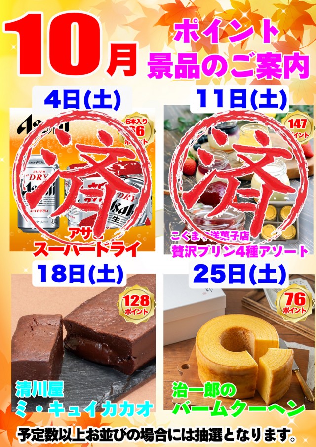 1位 10月26日(日) 2位 10月19日(日) 3位 10月9日(木)