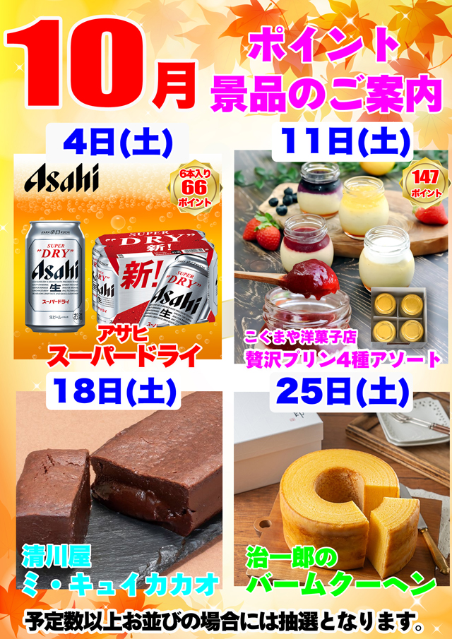1位 10月26日(日) 2位 10月19日(日) 3位 10月9日(木)