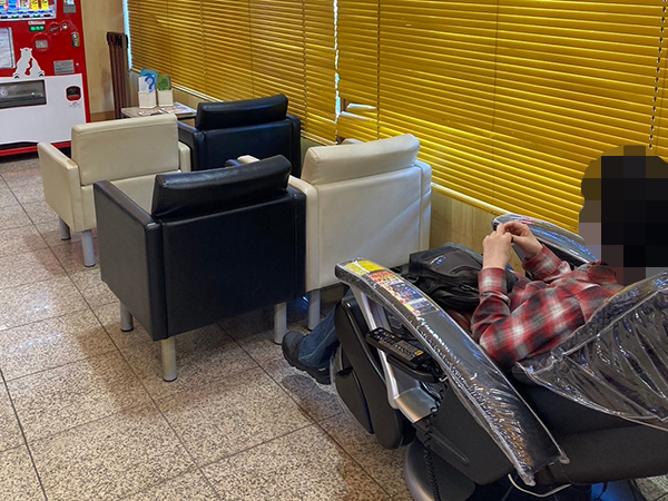 店内にはソファやマッサージチェアが並べられたレストスペースが用意され、利用するプレイヤーたちは皆、リフレッシュできていたようだ。