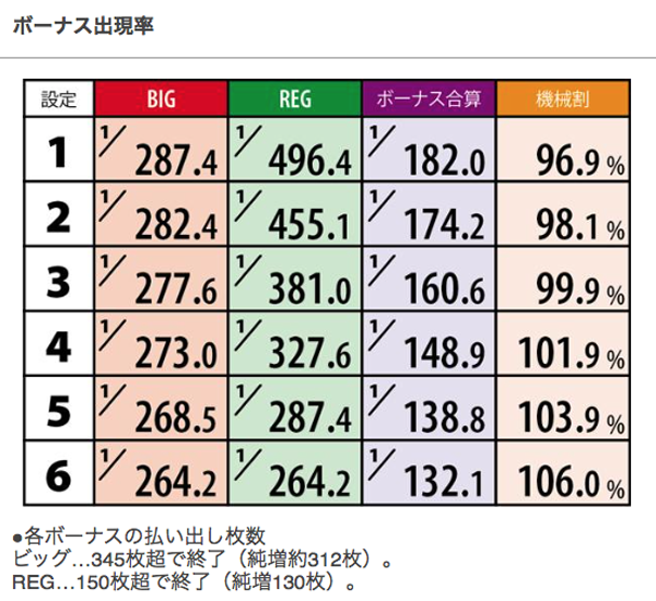 設定推測において重要となるのがREG確率。確率の差が大きいだけに、おおまかな高低を見極める際にも活用できる。