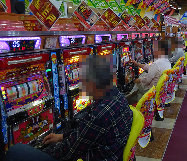 ホール全体が活気づいており、AT・ART機とボーナスタイプの両方に楽しげな光景が広がっていた。
