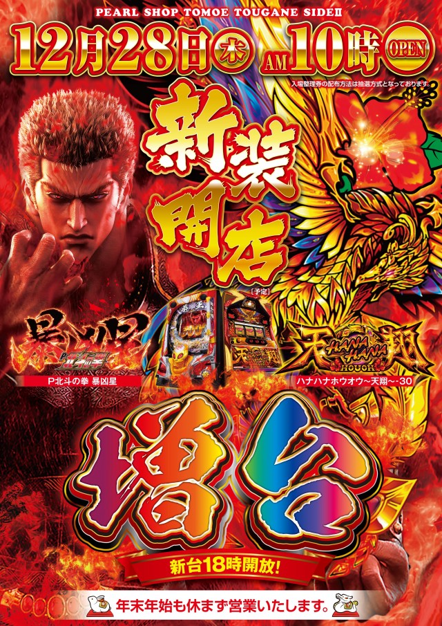 明日12月28日新装開店10時OPEN!新台開放18時!!