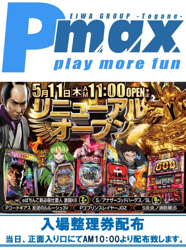 5/11リニューアルオープン!スマパチ導入!11時オープン!