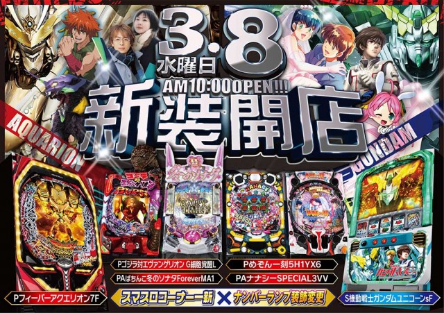3/8新装開店!Pアクエリオン・Sガンダムユニコーン導入!