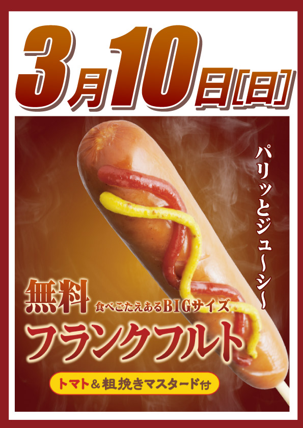 明日2月10日も元気に10時OPEN!フランクフルト配布!