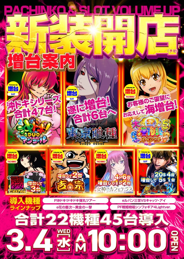3月4日(水)新装開店!!