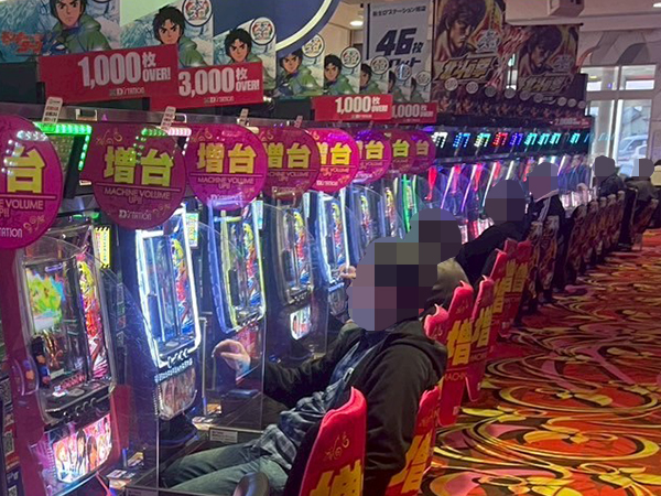 店内では貸し玉料金を問わず様々な機種で、心ゆくまで楽しむプレイヤーの姿が見られた。