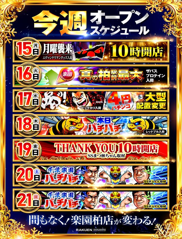 【楽園柏店】★★明日12月17日のご案内★★