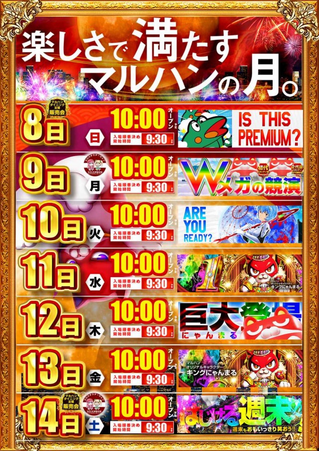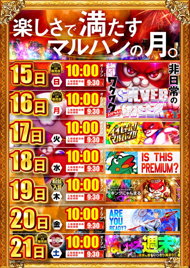 9月8日(日) 週末もマルハンへ!最新台大量導入済!