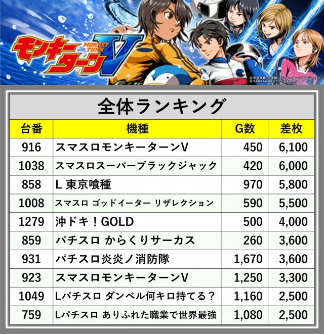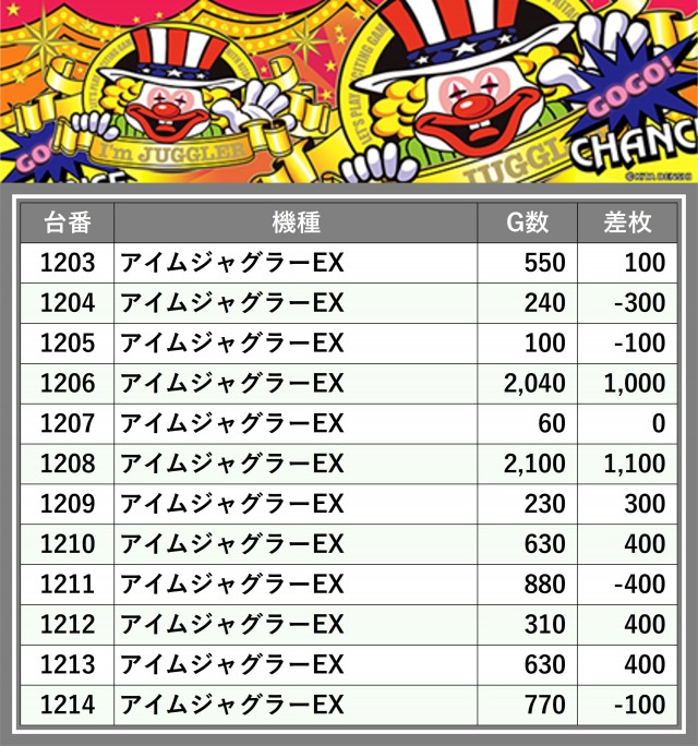 厳選された取材対象機種をはじめ、その他スロット全体から好記録が飛び出した!プレイヤーが楽しんだ1日を下記データにて振り返ってみて欲しい。