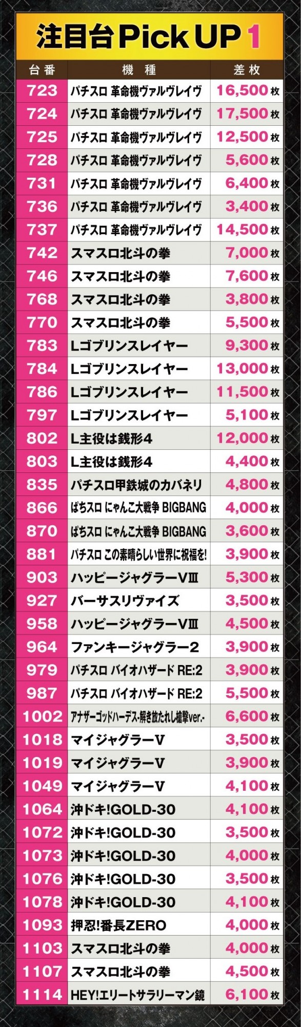 そのほかにも5,000枚オーバーを超える好調台が多数誕生するなど、大盛況となった今回のブラックエンジェルス極。次回のブラックエンジェルス降臨の際も、是非この結果を参考にしてほしい。