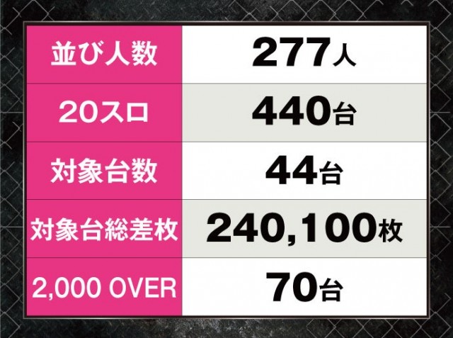 店内はどの台からでもチャンスを掴むことができる結果となった。次回開催時にはこれらを参考に、是非チャンスを掴んで欲しい。