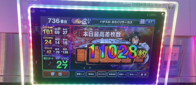 注目の優秀台ラインナップはこちら。人気AT機や新台AT機が中心となっているのが見てとれるが差枚数ではなんと3台ほど万枚オーバーが飛び出ている。『パチスロ 革命機ヴァルヴレイヴ』の791番台、『L009 RE:CYBORG』の805番台、『ぱちスロ 乃木坂46』の813番台が見事に万枚! その他、あちらこちらから万遍なく、前回の「英雄」とはまた違った優秀台の面々となったようだ。