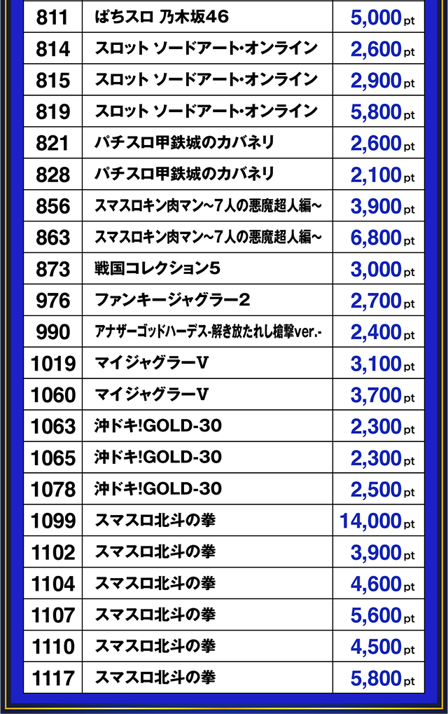最終的に4,000pt以上を記録した台が多く、なかには14,000ptまで伸ばしたものもあったぞ。