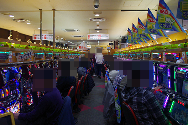 14時を過ぎた頃の240玉/1000円パチンコは、「CRスーパー海物語IN沖縄3」や「CRスーパー海物語IN JAPAN」といった海物語シリーズがとくに盛況。素敵な笑顔をみせているプレイヤーも多く、満足度も高そうにみえた。