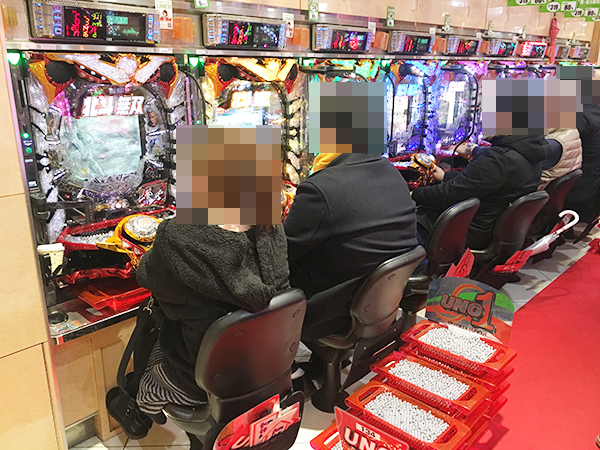 1000円/240玉パチンコでは、新台の「ぱちんこCR真・北斗無双」が大盛況。