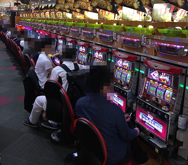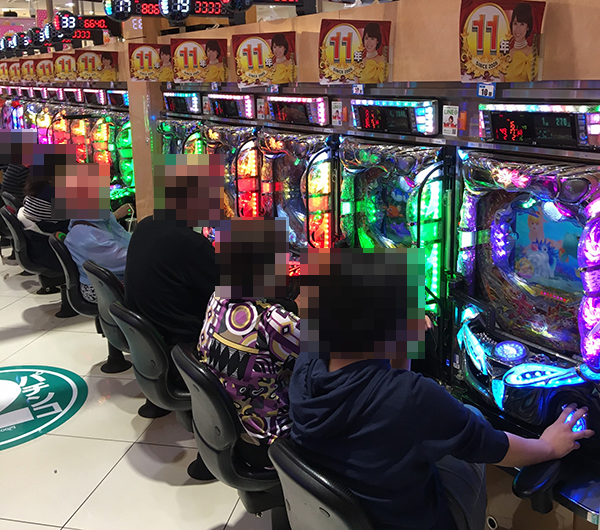 ホール内をみてみると、パチンコ・パチスロともに大きくにぎわっていた。