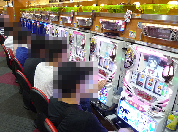 15時頃の1000円/48枚パチスロでは、「バジリスク~甲賀忍法帖~絆」や「SLOT魔法少女まどか☆マギカ」など、AT・ART機が盛況。満足そうな表情で遊技を楽しんでいるプレイヤーの姿もあり、有意義な時間を過ごせていたようだ。
