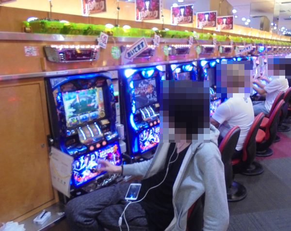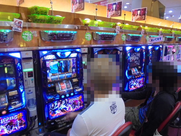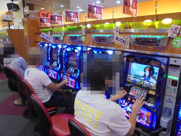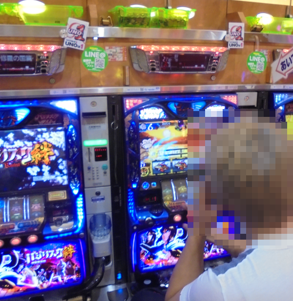 「バジリスク~甲賀忍法帖~絆」において、うれしそうに遊技をおこなうプレイヤーを確認。