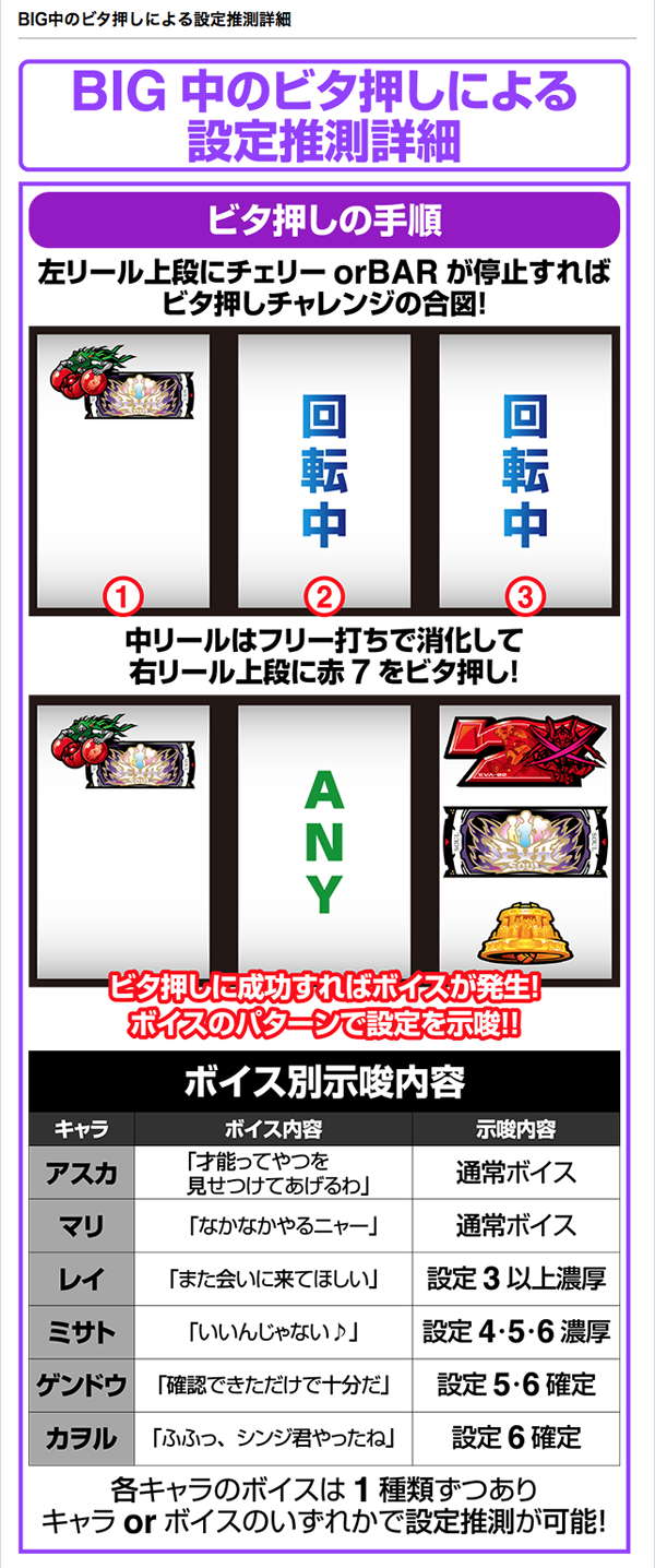BIG中のビタ押し成功時に発生するボイスをチェックしよう。