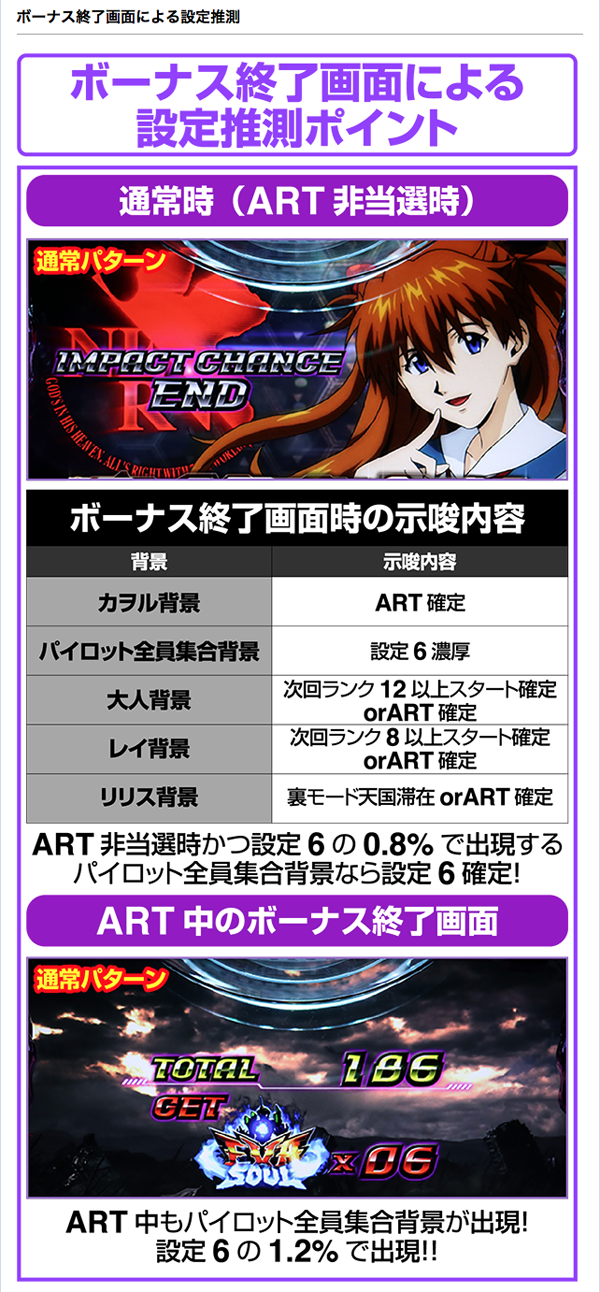 また、高設定ほど高いボーナス確率やART突入率などもチェックしつつ、設定を推測していこう。