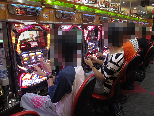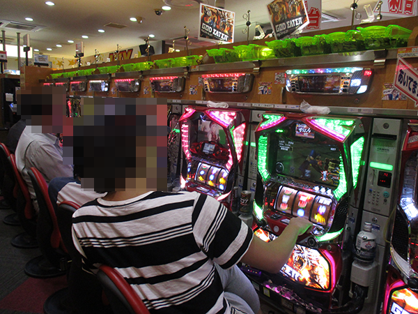 14時を過ぎると、20円パチスロでは「パチスロ ゴッドイーター」がにぎわっていて、機種の性能を最大限に発揮している台が多かった。プレイヤーを見ると、朝イチから打っている人ばかりとなっており期待通りの遊技ができているようであった。
