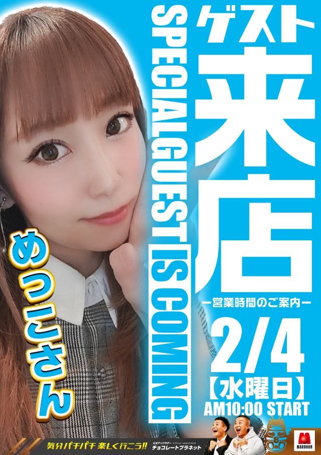 2月4日(水)新台入替&めっこさん来店!10時開店‼