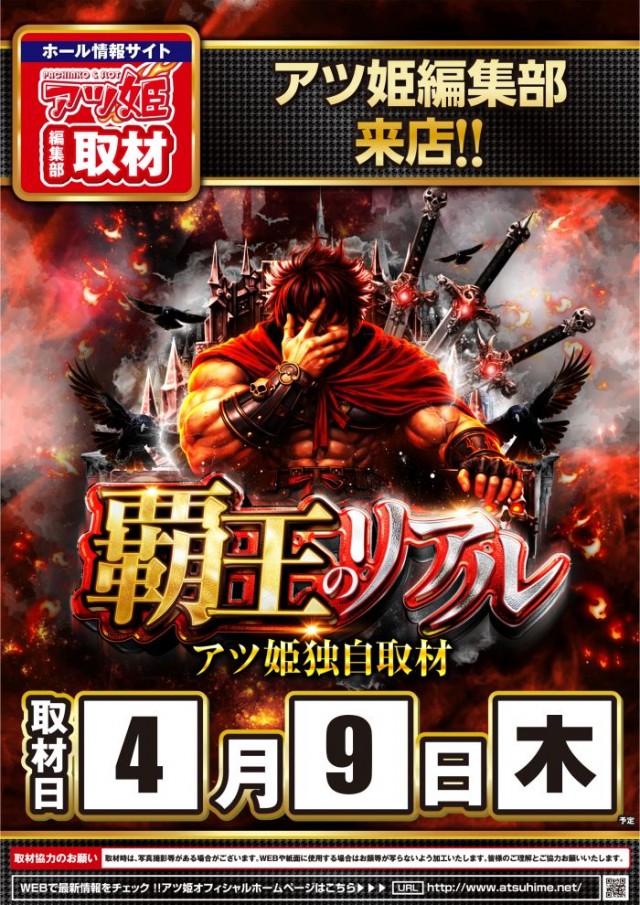4月9日(木)最新台導入済!!覇王のリアル取材!!