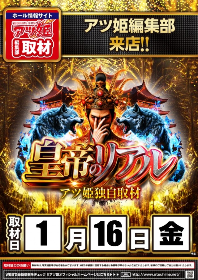 1月16日(金) 皇帝のリアル取材!!10:00オープン!!