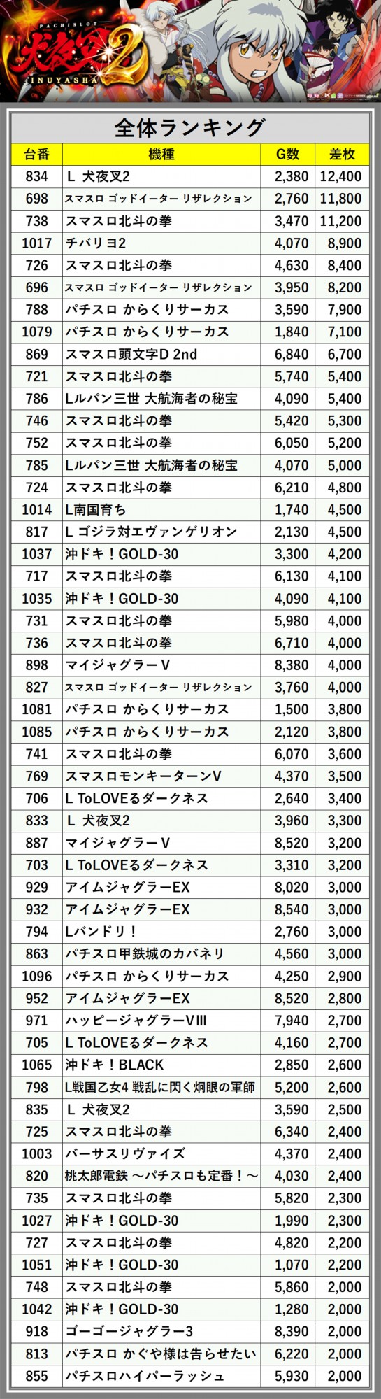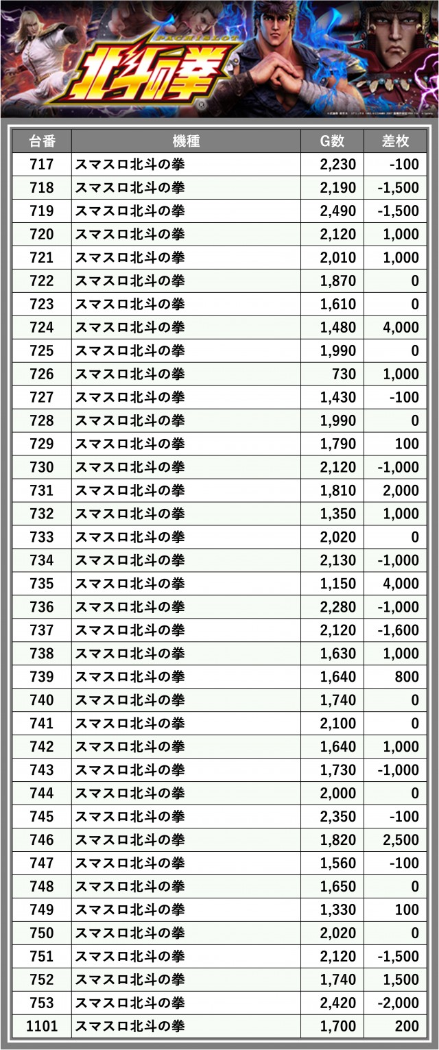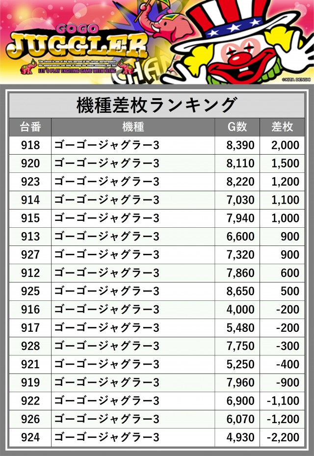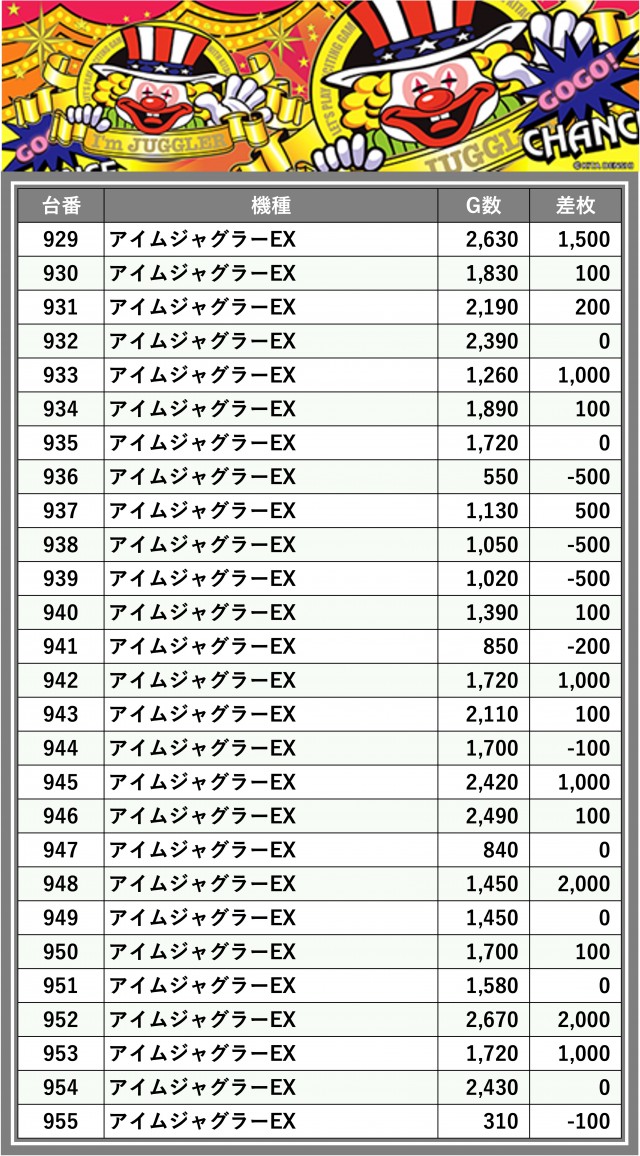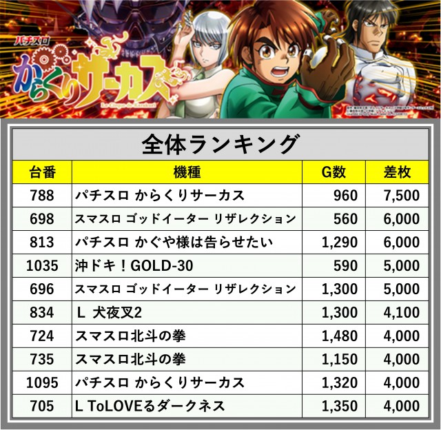 厳選された取材対象機種をはじめ、その他スロット全体から好記録が飛び出した!プレイヤーが楽しんだ1日を下記データにて振り返ってみて欲しい。