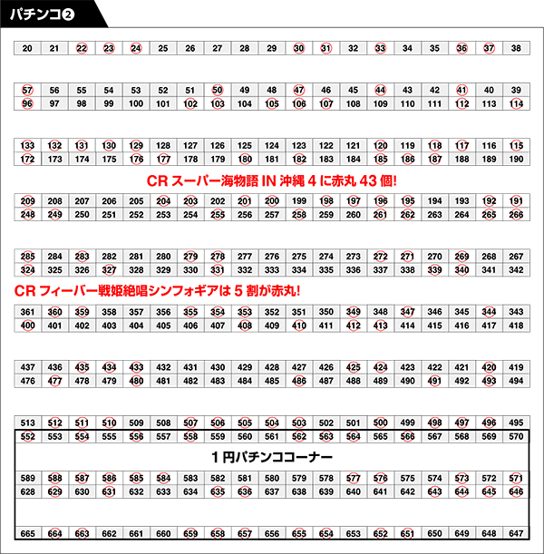 パチンココーナーでは、「CRスーパー海物語IN沖縄4」と「ぱちんこCR真・北斗無双」にたくさんの赤丸! 人気を集めているうえに見どころも満載と、注目せざるを得ない状況となっていた。