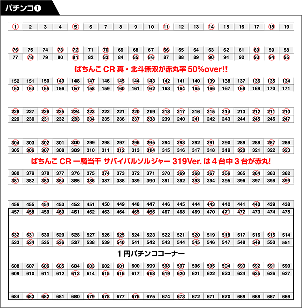 総設置台数が1000台を超える大型のホールでMVPに選ばれたとくに優秀な赤丸台を紹介していこう!!