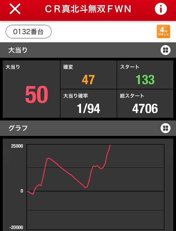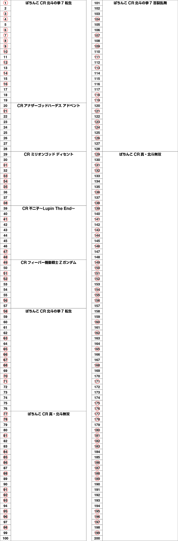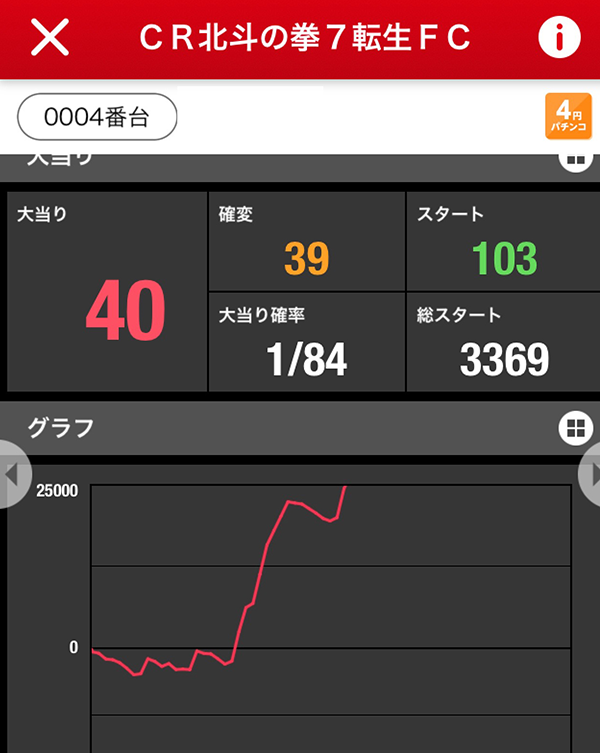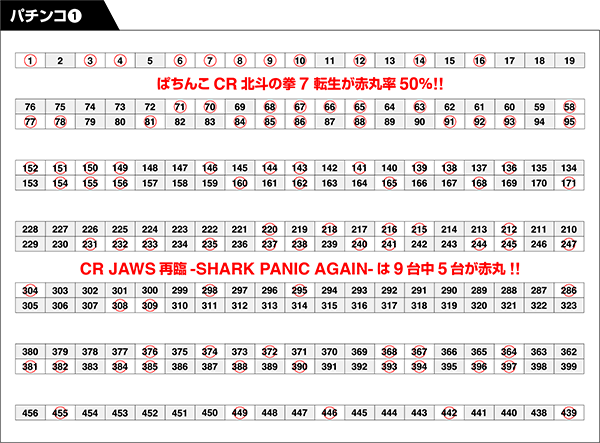 「ぱちんこCR北斗の拳7 転生」は38台中19台と、赤丸率は驚異の50%!